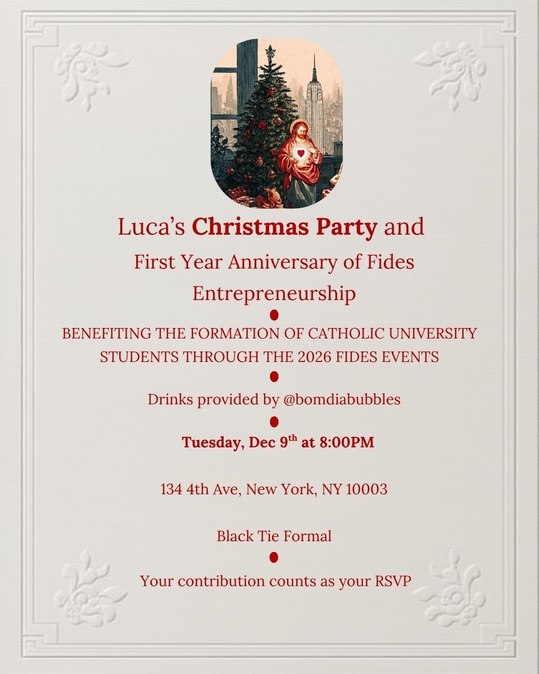 Not only that but this party will help sponsor Catholic high school and university students so they can attend our monthly Fides Entrepreneurship events throughout 2026.